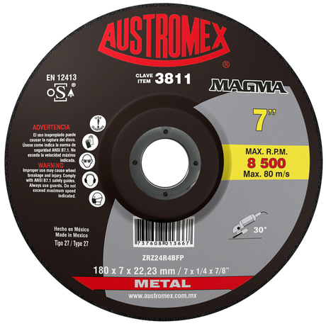 Rueda abrasiva para rectificado de tipo 1, 7 pulg X 1/2 pulg X 1-1/4 pulg de grano 120