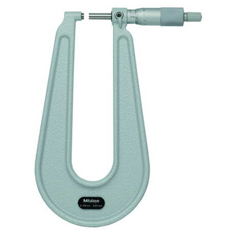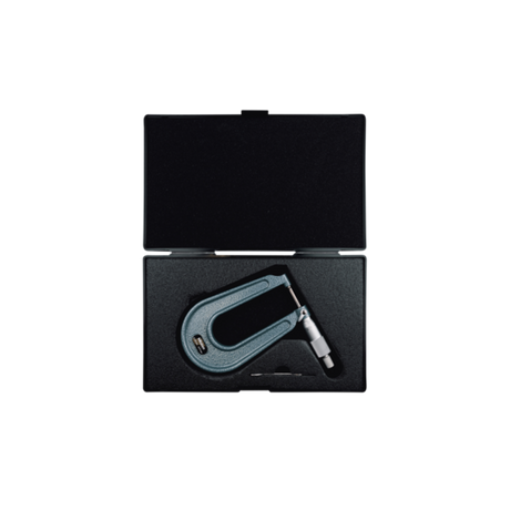 Micrómetro para lámina metálica 0-25mm, tope/husillo plano, garganta de 100mm