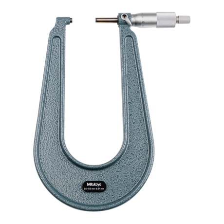 Micrómetro para lámina metálica 25-50mm, tope/husillo plano, garganta de 150mm