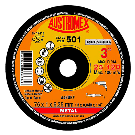 Disco de corte, tipo 41, medidas 3 pulg X 0.040 pulg X 1/4 pulg