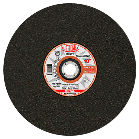 Disco de corte, tipo 41, medidas 10 pulg X 1/16 pulg X 1-1/4 pulg
