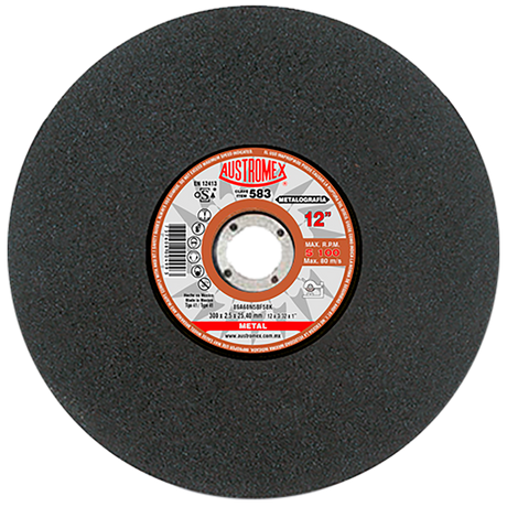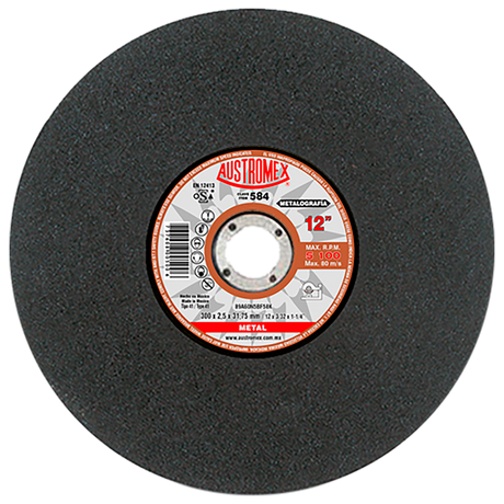 Disco de corte, tipo 41, medidas 12 pulg X 3/32 pulg X 1 pulg