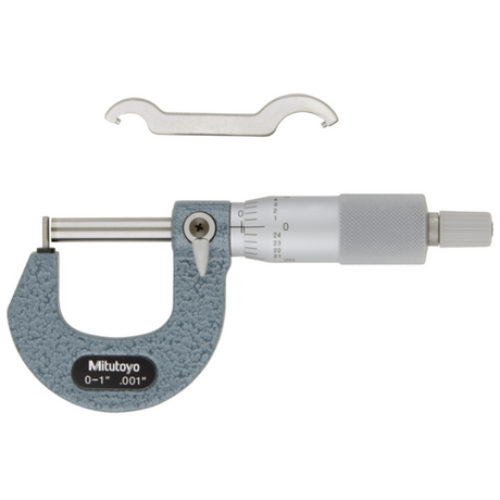 Micrómetro de tubo, tope de perno, husillo plano, 0-1 pulg