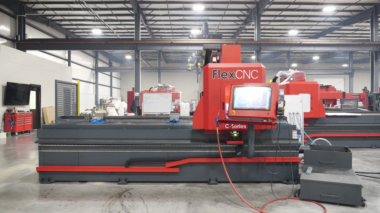 Máquina Flex CNC Modelo C10-02 con cambiador automático de 16 herramientas y movimientos XYZ de 120in/24in/17.5in, ideal para operaciones de precisión y alta eficiencia.