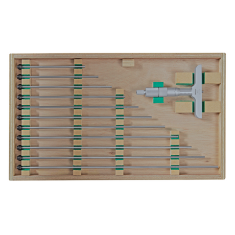 Micrómetro para profundidad, Varillas intercambiables 0-12 pulg, 4 pulg Base
