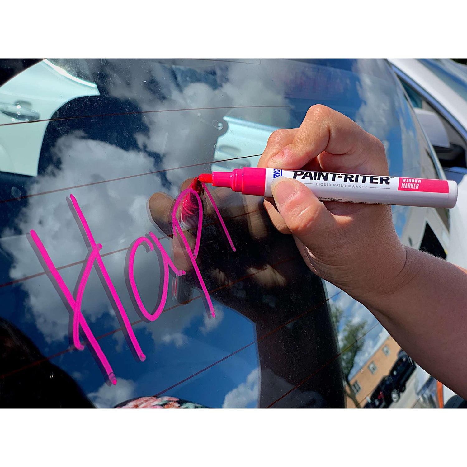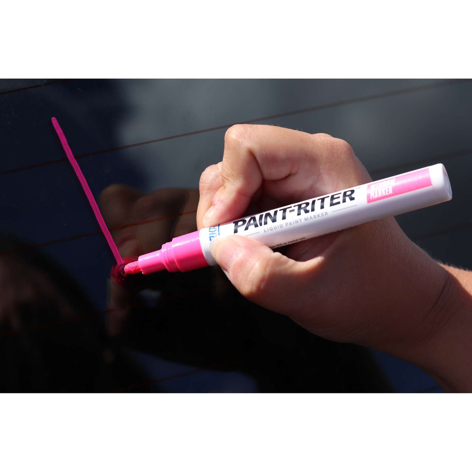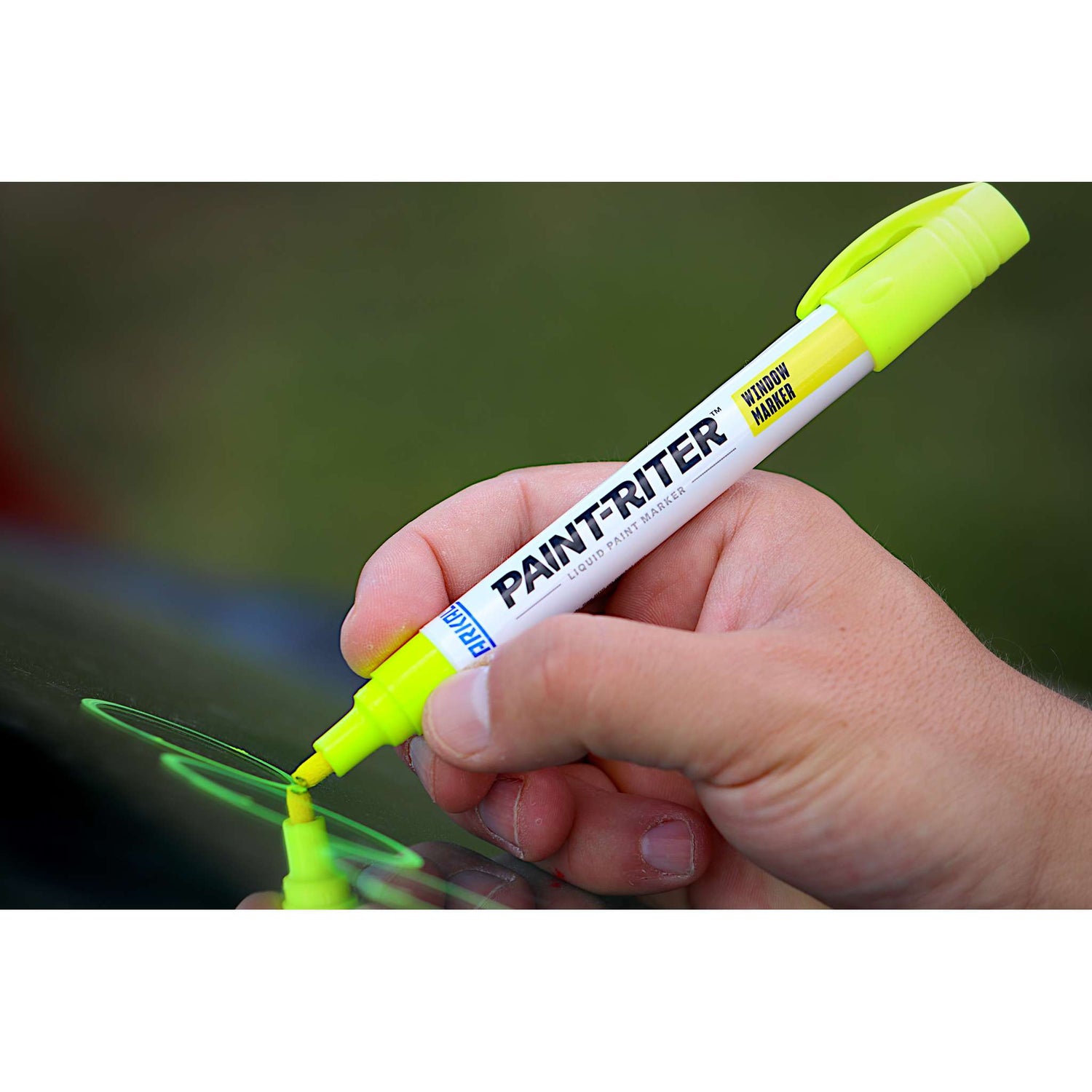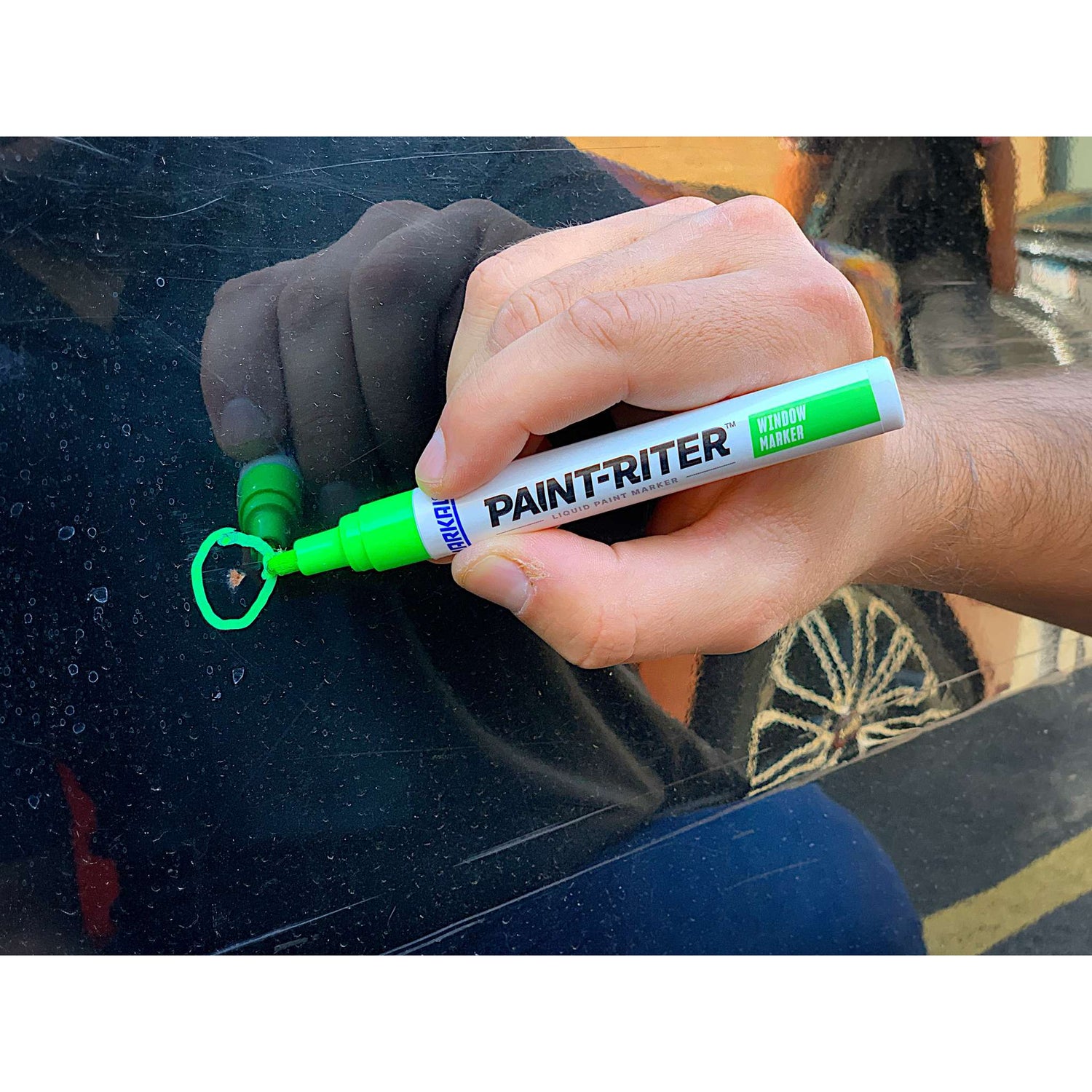 El marcador de pintura líquida para ventanas Paint-Riter® de Markal® es una fórmula de pintura líquida especialmente diseñada para crear marcas brillantes temporales en ventanas, cristales y automóviles. Las marcas se eliminan de forma segura con agua y no dejan fantasmas ni residuos, lo que lo convierte en una herramienta esencial para talleres de carrocería, lotes de alquiler de coches, concesionarios y mucho más.