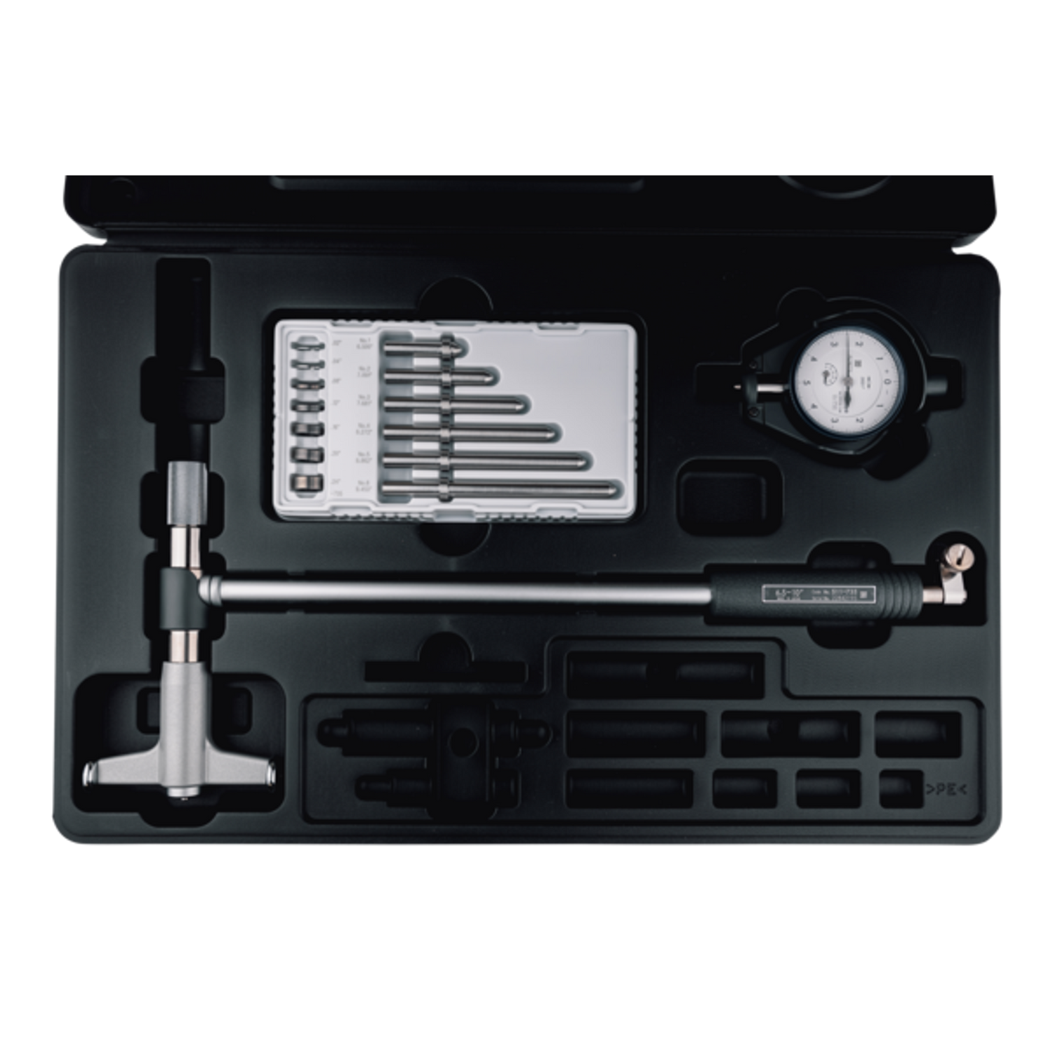Juego de medidores de agujeros de aplicación de corto alcance que se autocentra automáticamente a través de un puente de centrado y ofrece los siguientes beneficios: Reduce la influencia del calor de la mano del operador en un 50% al hacer que el agarre tenga una estructura hueca, manteniendo así una medición de alta exactitud. roldana Intercambiable (0,5 mm de espesor) se suministran como accesorios estándar, puedes habilitar la configuración en pequeños pasos. Las puntas de contacto son de carburo (intervalo: 18 mm), lo que le brinda alta durabilidad y resistencia al desgaste.