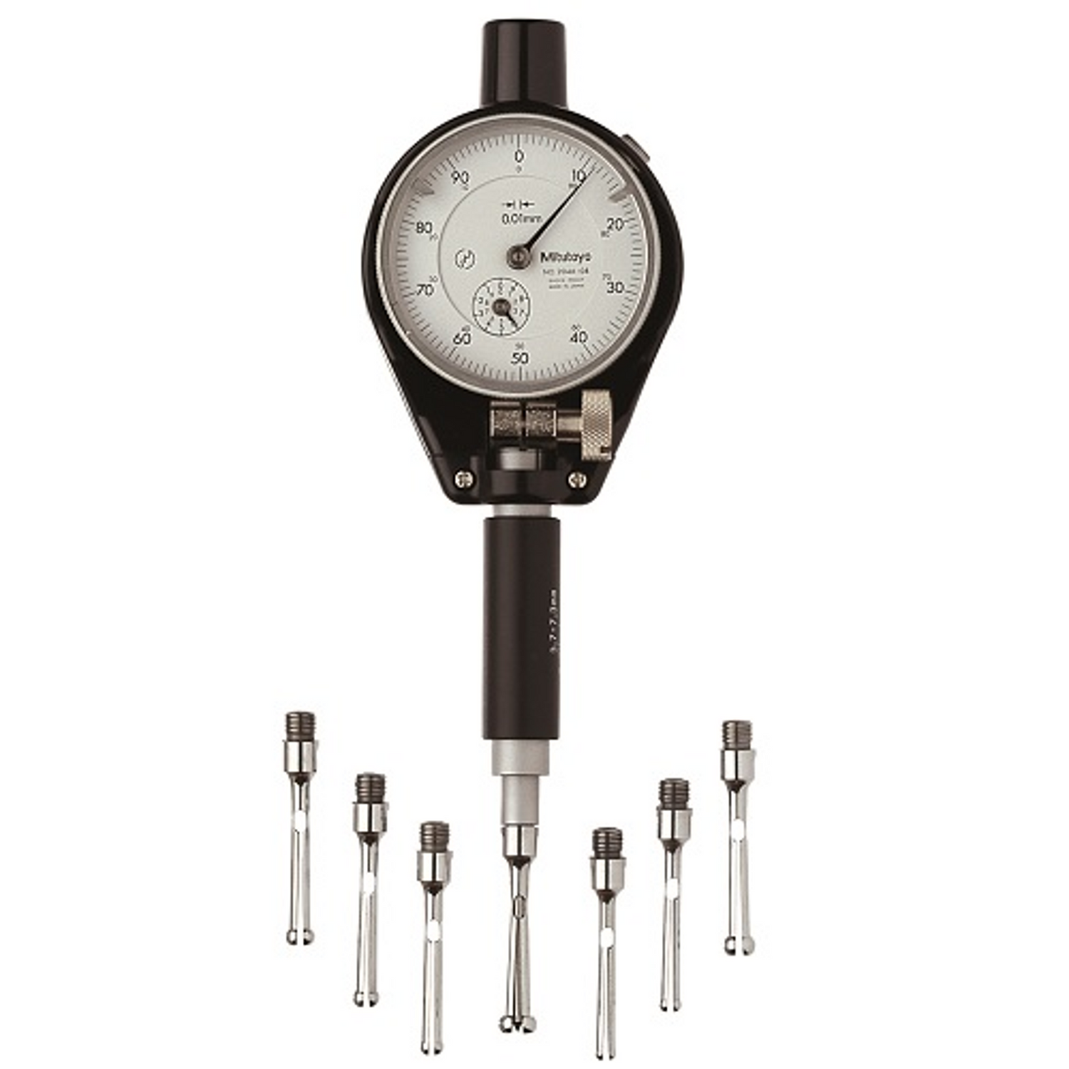 El medidor de Agujeros Mitutoyo cuenta con punta de contacto dividida en dos puntos ideal para mediciones de diámetros más pequeños. Ofrece los siguientes beneficios: Un medidor de agujeros de exactitud para que pueda realizar mediciones rápidas y exactas de diámetros de orificios pequeños(0.95-18 mm). Puede reemplazar el indicador analógico instalado en este instrumento con un indicador Digimatic si lo necesita. La punta de contacto es con acabado en cromo duro