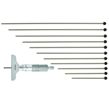 Micrómetro para profundidad, Varillas intercambiables 0-12 pulg, 2,5 pulg Base