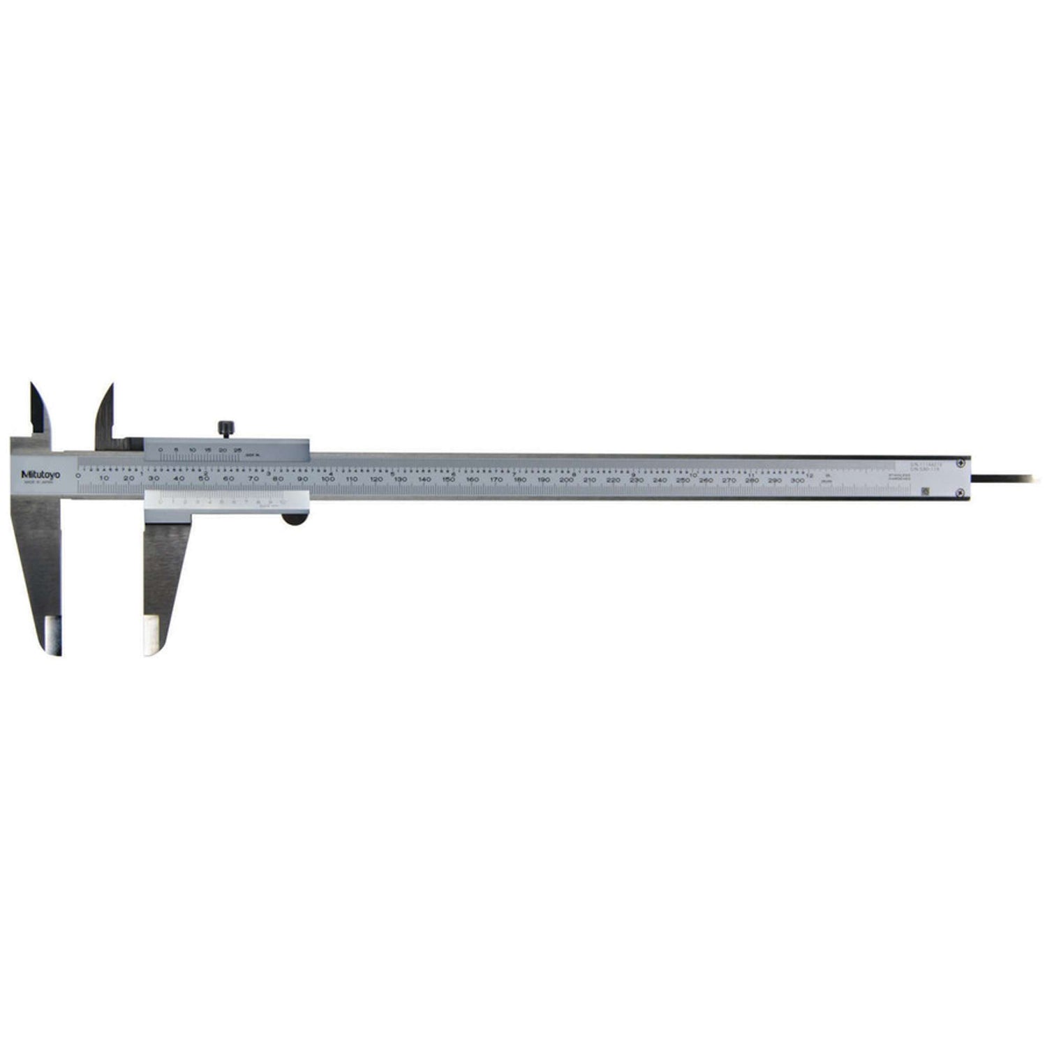 Calibrador vernier Mitutoyo de doble escala y alta exactitud/resolución equipado con puntas interiores y exteriores estándar. Construcción de acero inoxidable endurecido con escalas cromadas satinadas fáciles de leer.