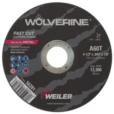 Disco de corte, tipo 41, medidas 4 1/2 Pulg X 0.040 pulg X 7/8 Pulg