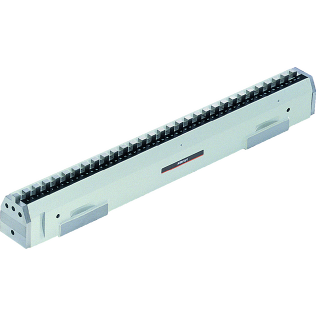 Dispositivo de calibración Mitutoyo diseñado para verificar la exactitud de posicionamiento de máquinas herramienta y la exactitud de medición de máquinas de medición por coordenadas. Consiste en una pila de bloques patrón de acero alojados en un marco rígido.