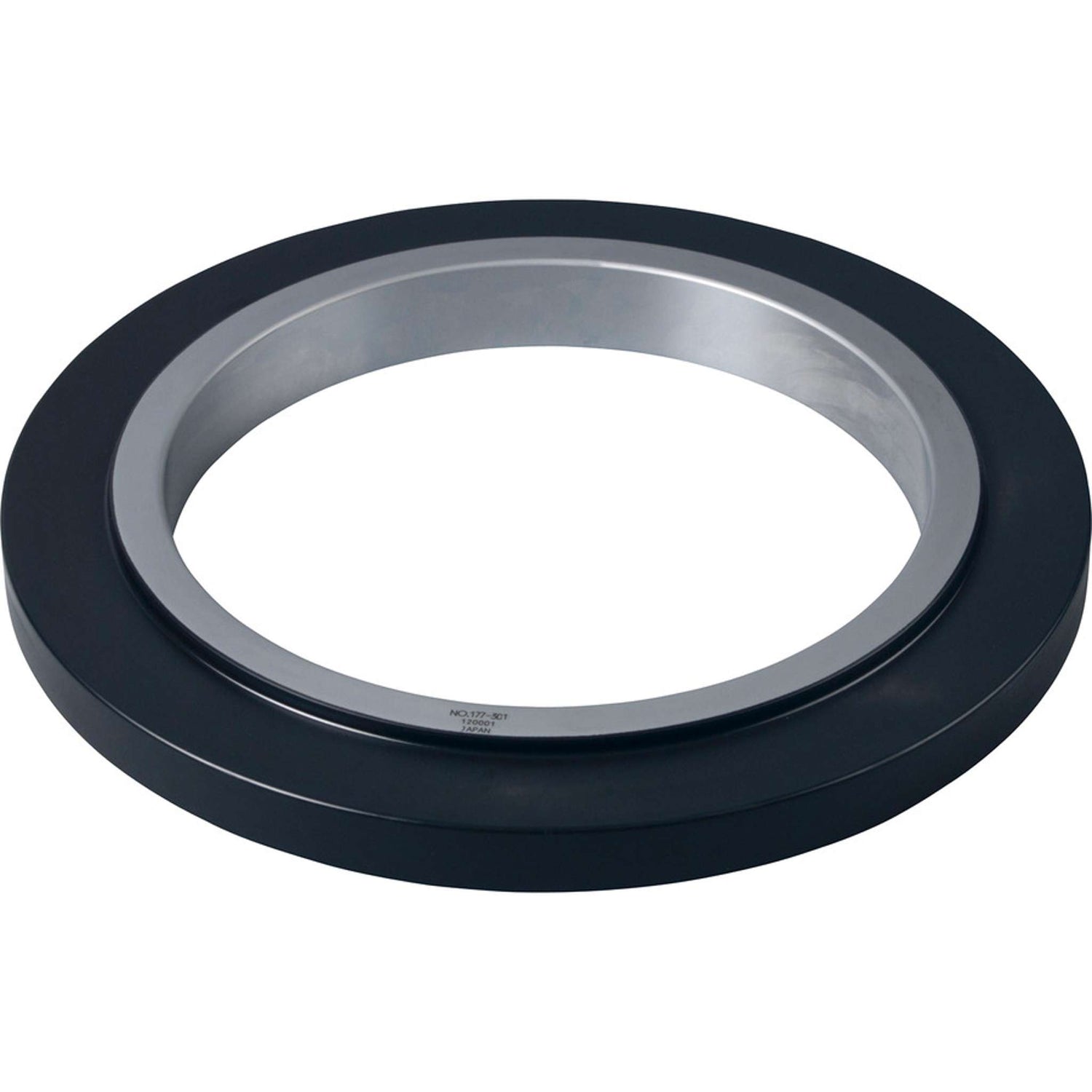 Un anillo de fijado Mitutoyo de acero para un ajuste rápido y exacto de medidores de agujeros con carátula, medidores Holtest, y Micrómetro de interiores. El valor de calibración real para el diámetro esta marcado en cada anillo.