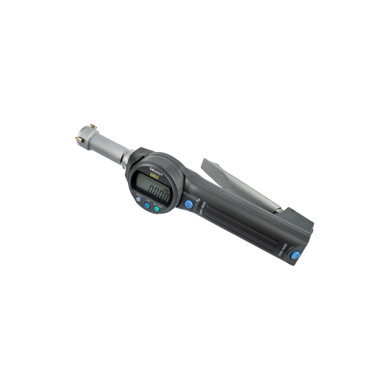 Medidor de agujeros de apertura rápida Digimatic de tres puntos de unidad individual. Ofrece los siguientes beneficios: Le permite tomar mediciones fácil y rápidamente. Pernos de medición recubierto de titanio le brinda una excelente durabilidad y resistencia al impacto. unidad de visualización giratoria de 330° también le brinda una fácil lectura en cualquier ángulo. Función de juicio de tolerancia PASA/NO PASA.