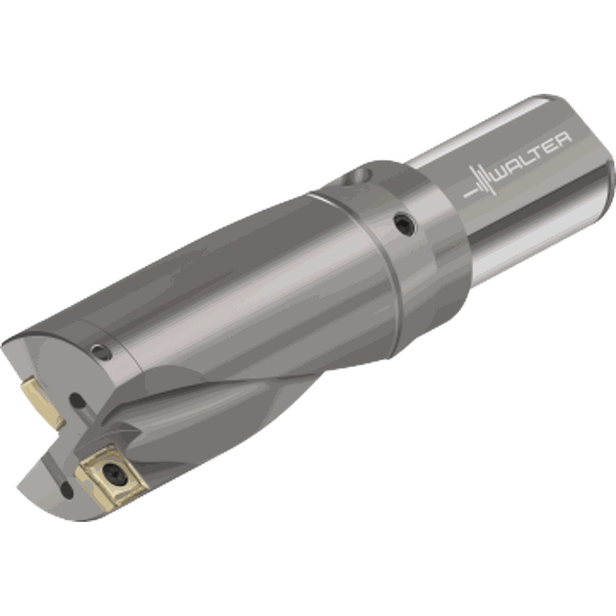 Broca con plaquitas de corte D4120 de la línea Drion·tec™. Mango cilíndrico con superficie, medida métrica, con una longitud de corte de 2xD. Diámetro de corte Dc=55mm, ideal para aplicaciones que requieren alta capacidad de corte y durabilidad.