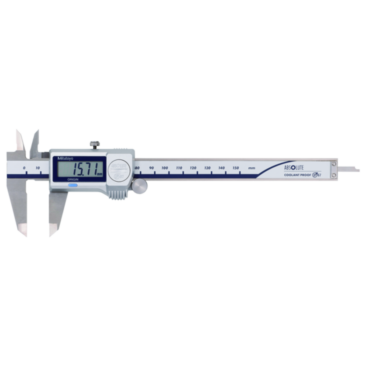 Calibrador digimatic ABSOLUTE IP67 permite mediciones confiables en una amplia gama de situaciones y ofrece los siguientes beneficios: Excelente resistencia al agua y al polvo (nivel de protección IP67), lo que permite su uso en situaciones de mecanizado que incluyen salpicaduras de líquido refrigerante. Es resistente al polvo, cumple con la norma EN60529 y resiste la inmersión total temporal en agua sin sufrir ningún daño. La escala ABS (ABSOLUTE) no requiere configuración de origen después del encendido y no tiene límite para la velocidad de respuesta.