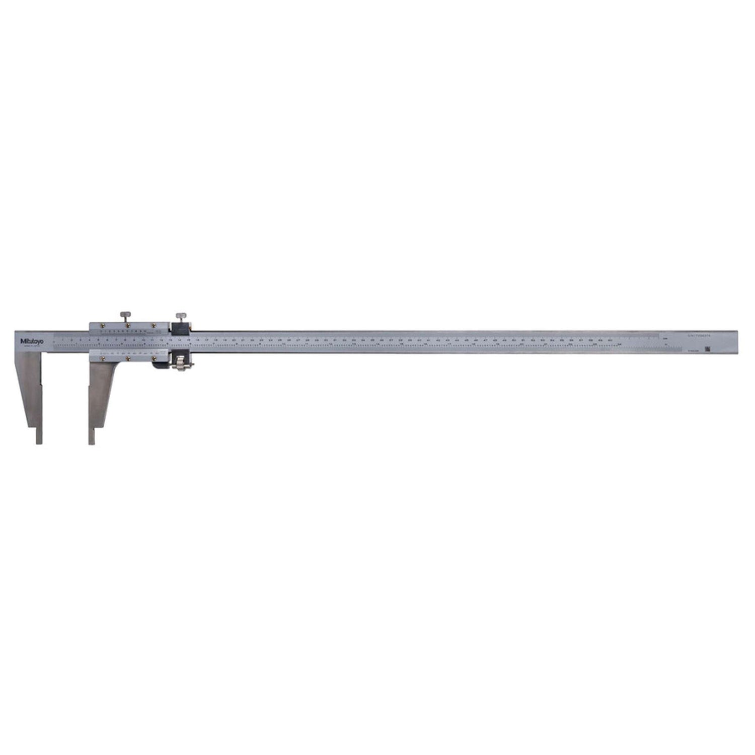 Calibrador Vernier Mitutoyo de doble escala equipado con una rueda de ajuste fino y puntas especiales. Construcción de acero inoxidable endurecido con escalas cromadas satinadas fáciles de leer.