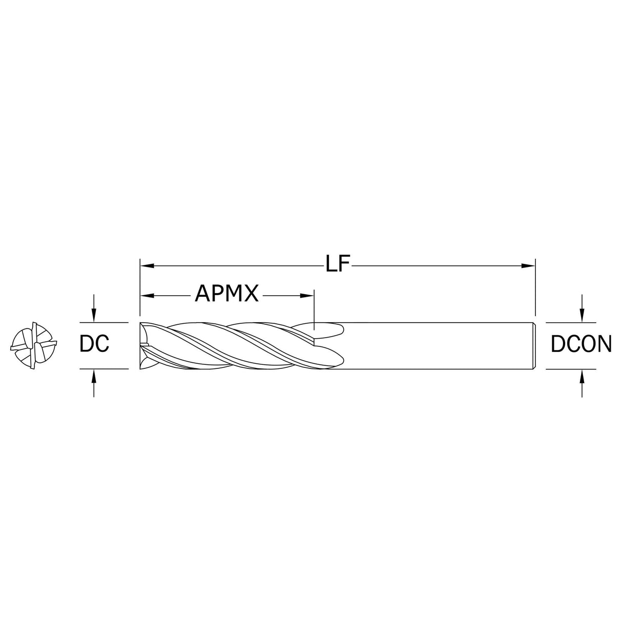 Cortador Vertical de Alto Rendimiento, Diam. Cte. 1/2 pulg, 4 Flautas, Punta Plana