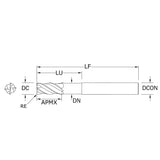 Cortador Vertical de Alto Rendimiento, Diam. Cte. 1/2 pulg, 4 Flautas, Radios en Esquina