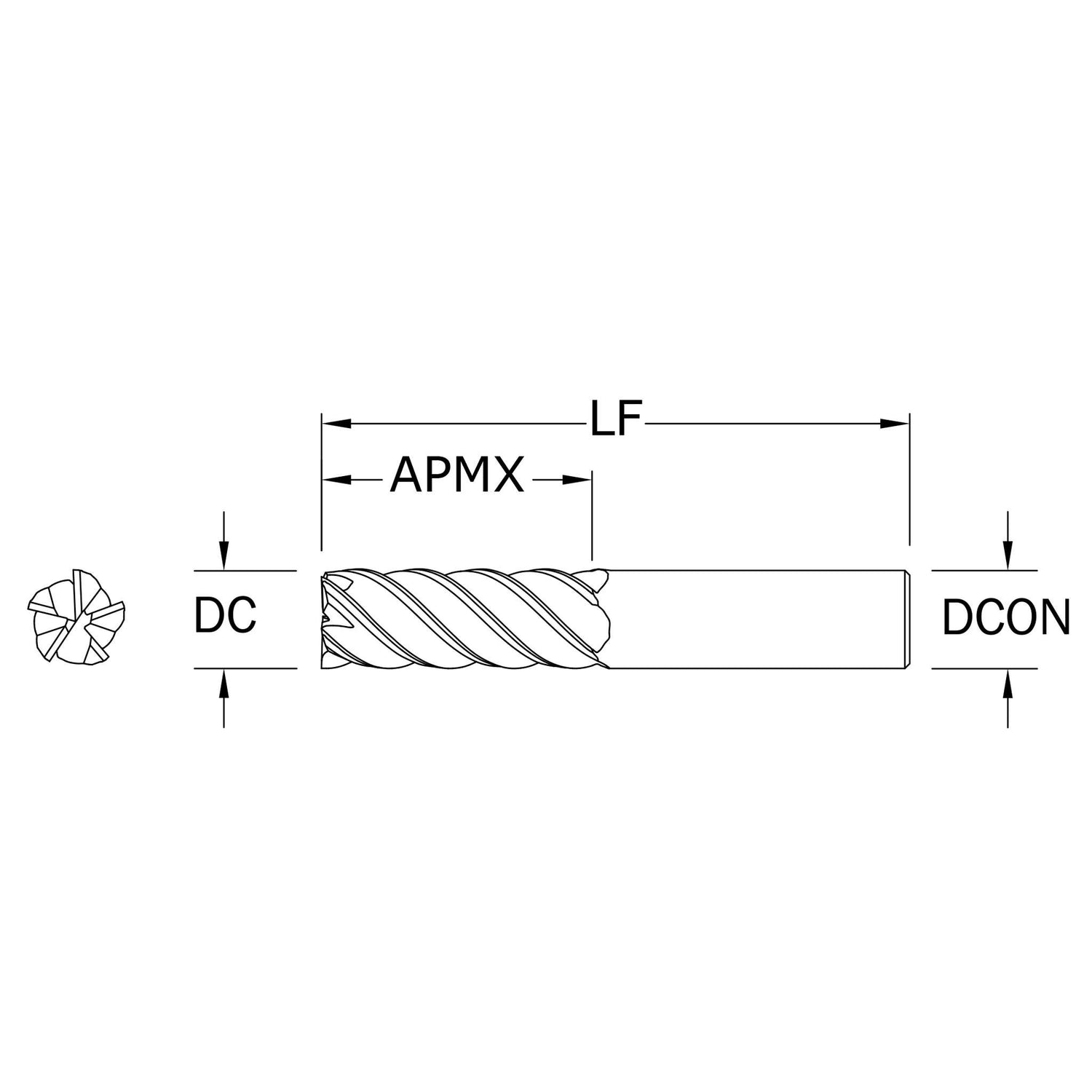 Cortador Vertical de Alto Rendimiento, Diam. Cte. 1/4 pulg, 5 Flautas, Punta Plana