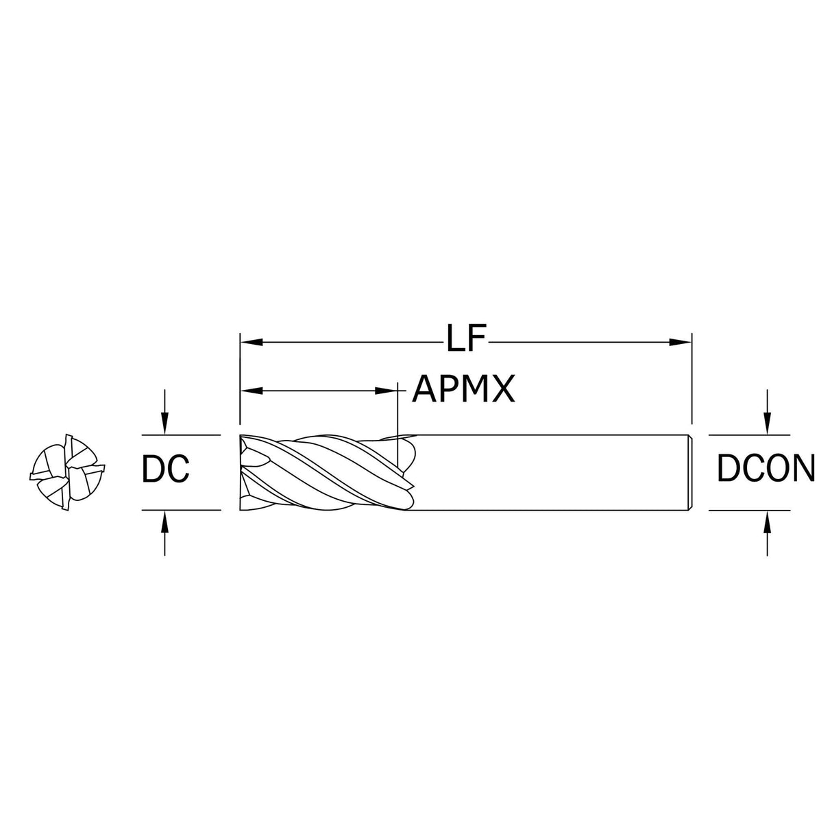 Cortador Vertical de Alto Rendimiento, Diam. Cte. 3/4 pulg, 4 Flautas, Punta Plana