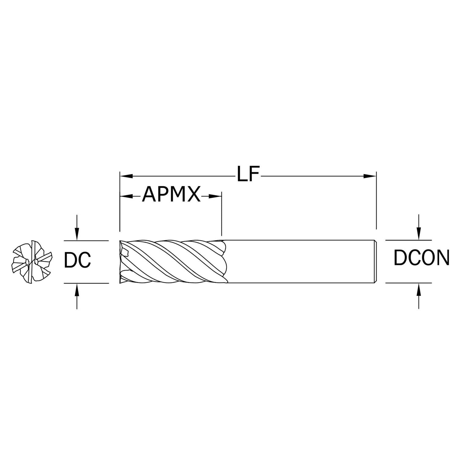 Cortador Vertical de Alto Rendimiento, Diam. Cte. 3/4 pulg, 6 Flautas, Punta Plana