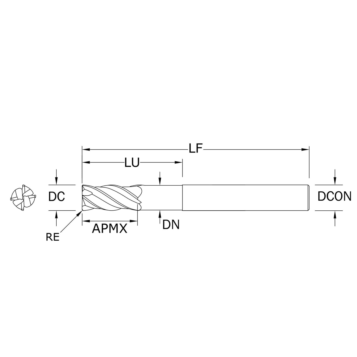 Cortador Vertical de Alto Rendimiento, Diam. Cte. 3/8 pulg, 4 Flautas, Radios en Esquina