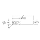 Cortador Vertical de Alto Rendimiento, Diam. Cte. 5/32 pulg, 4 Flautas, Punta Bola