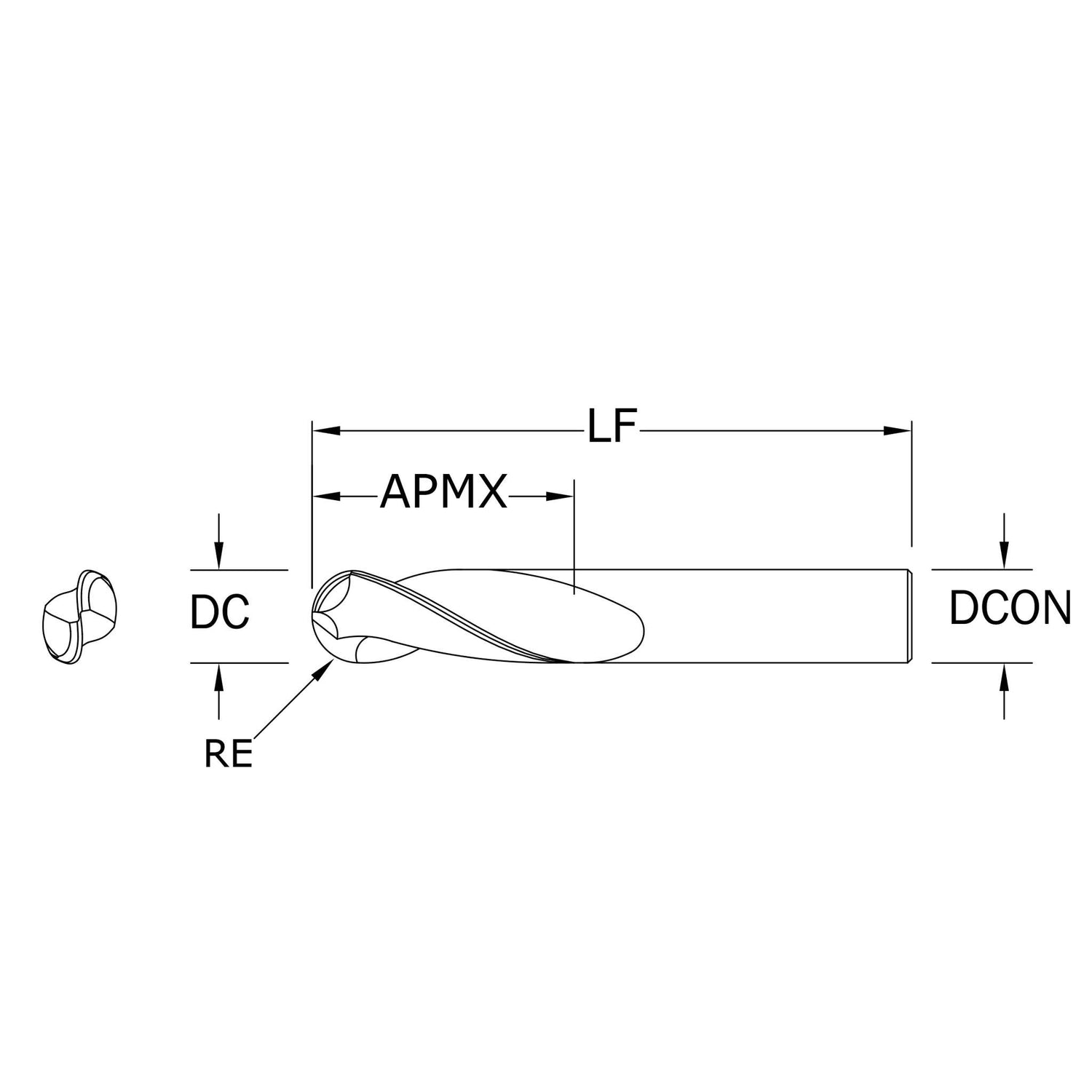 Cortador Vertical de Alto Rendimiento para Aluminio, Diam. Cte. 1/4 pulg, 2 Flautas, Punta Bola