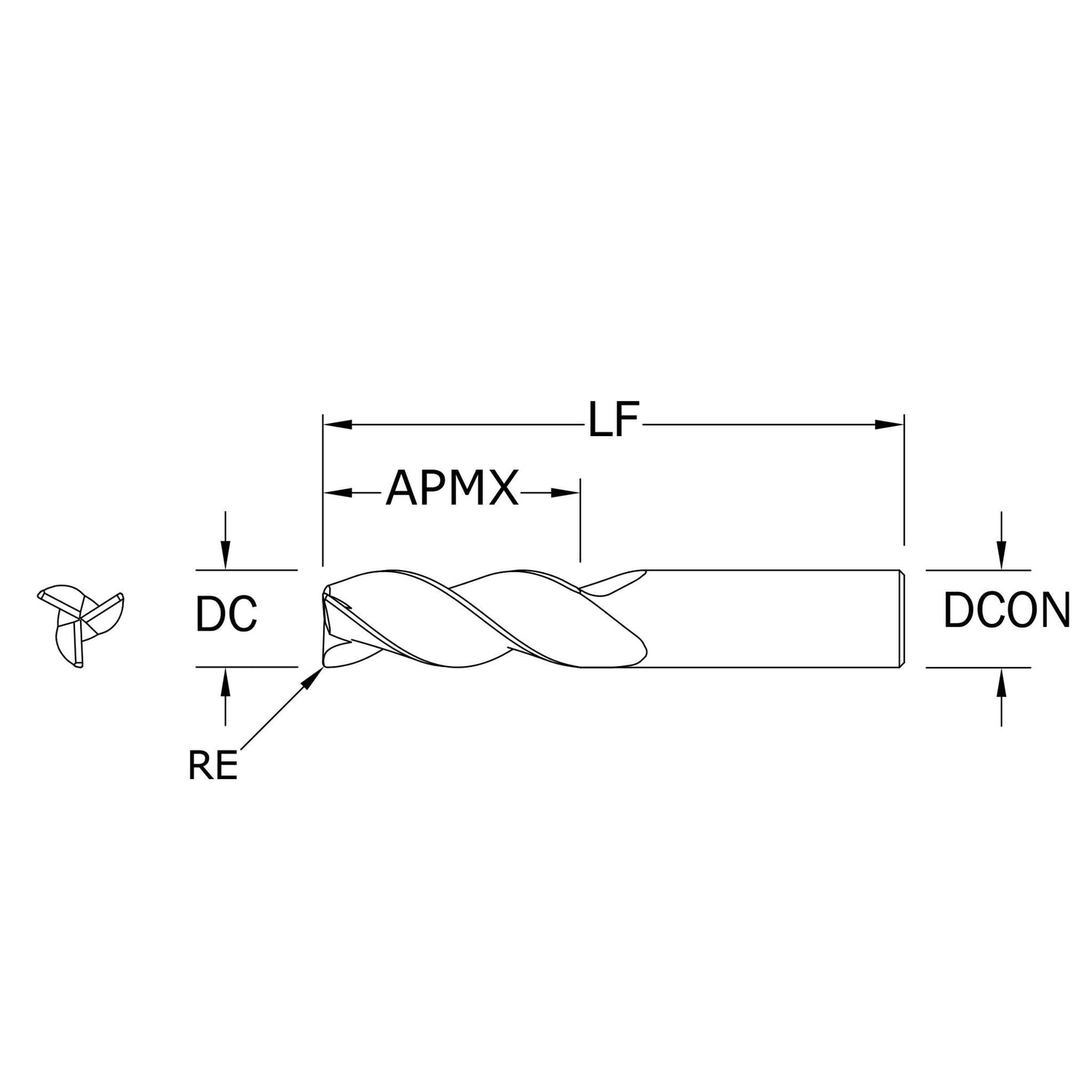 Cortador Vertical de Alto Rendimiento para Aluminio, Diam. Cte. 1/4 pulg, 3 Flautas, Radios en Esquina