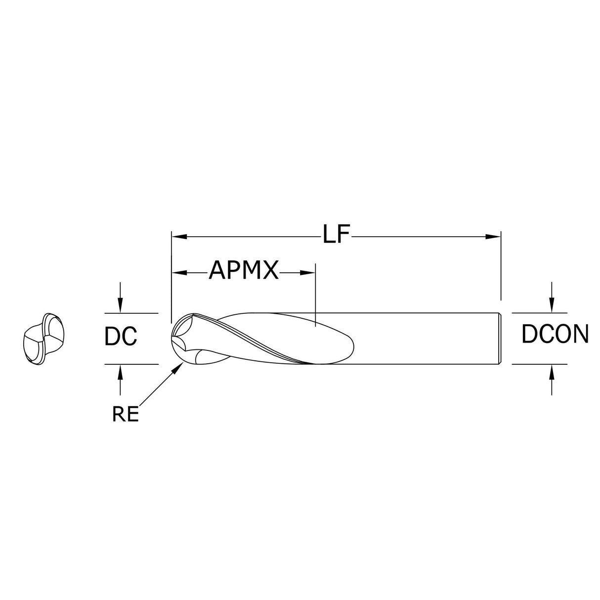Cortador Vertical de Alto Rendimiento para Aluminio, Diam. Cte. 8 mm, 2 Flautas, Punta Bola