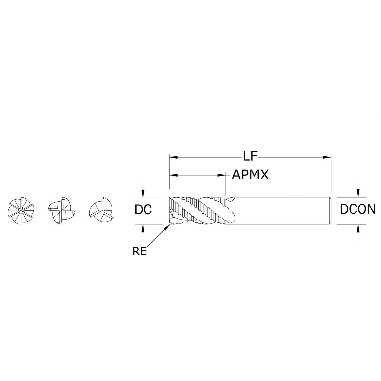 Cortador Vertical de Propósito General, Diam. 1/2 pulg, 4 Flautas, Rompevirutas