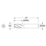 Cortador Vertical de Propósito General, Diam. 1/4 pulg, 4 Flautas, Punta Plana