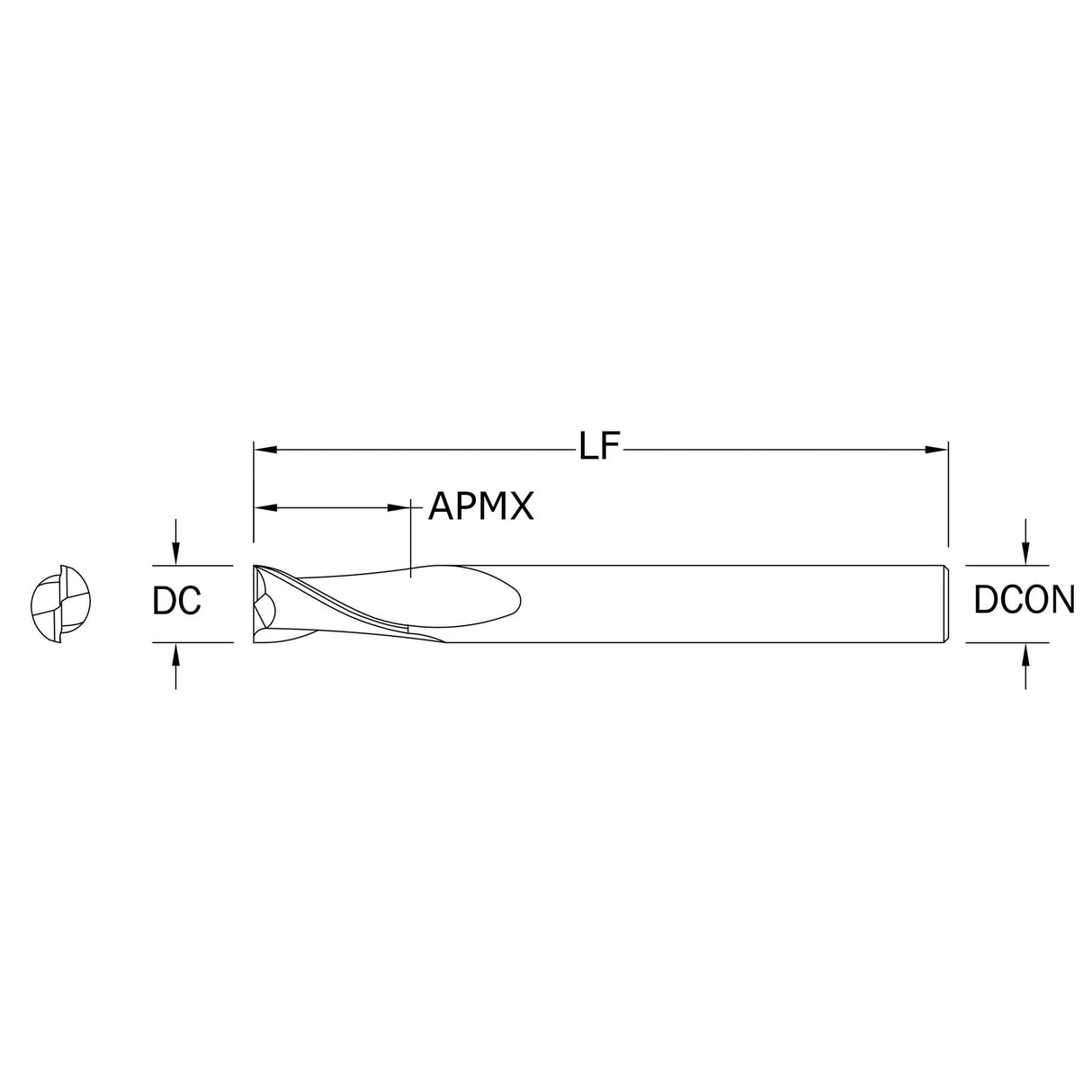 Cortador Vertical de Propósito General, Diam. 12 mm, 2 Flautas, Punta Plana