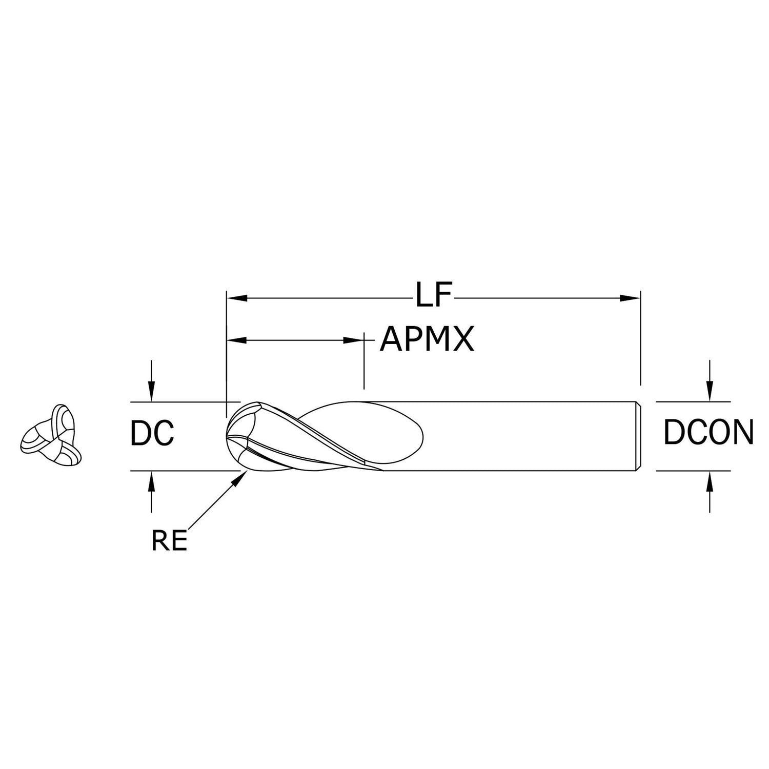 Cortador Vertical de Propósito General, Diam. 3/4 pulg, 3 Flautas, Punta Bola
