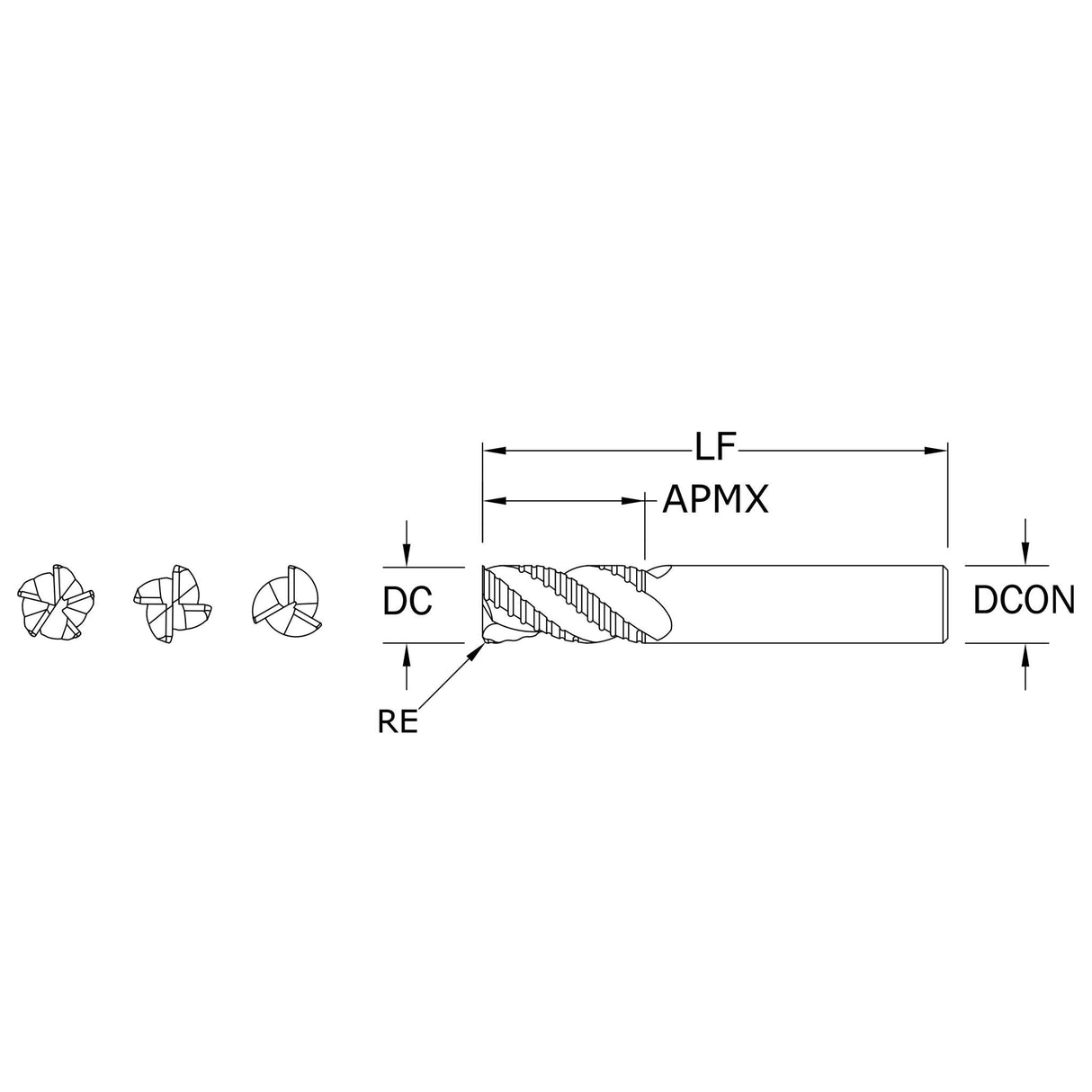 Cortador Vertical de Propósito General, Diam. 3/4 pulg, 4 Flautas, Rompevirutas