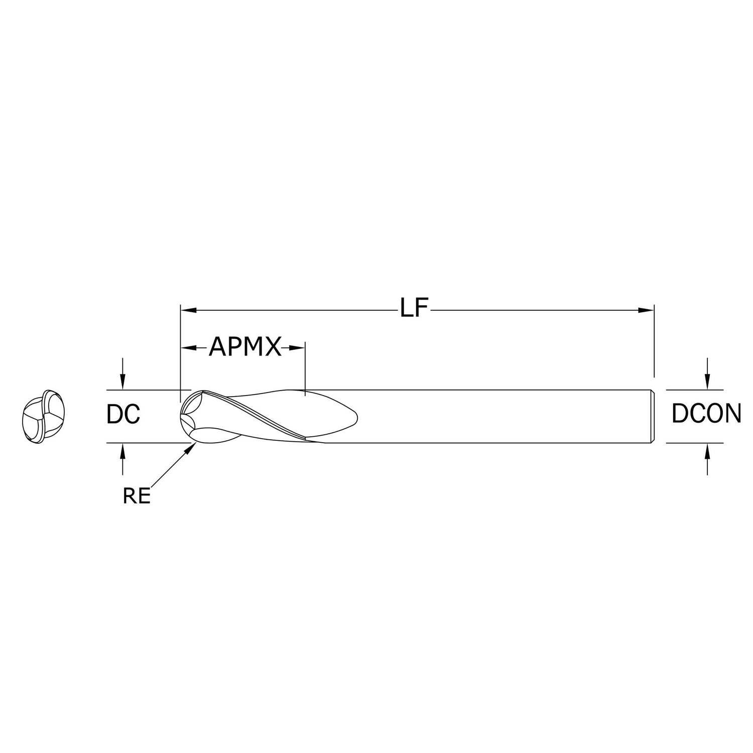 Cortador Vertical de Propósito General, Diam. 4 mm, 2 Flautas, Punta Bola