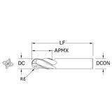 Cortador Vertical de Propósito General, Diam. 5 mm, 4 Flautas, Punta Bola