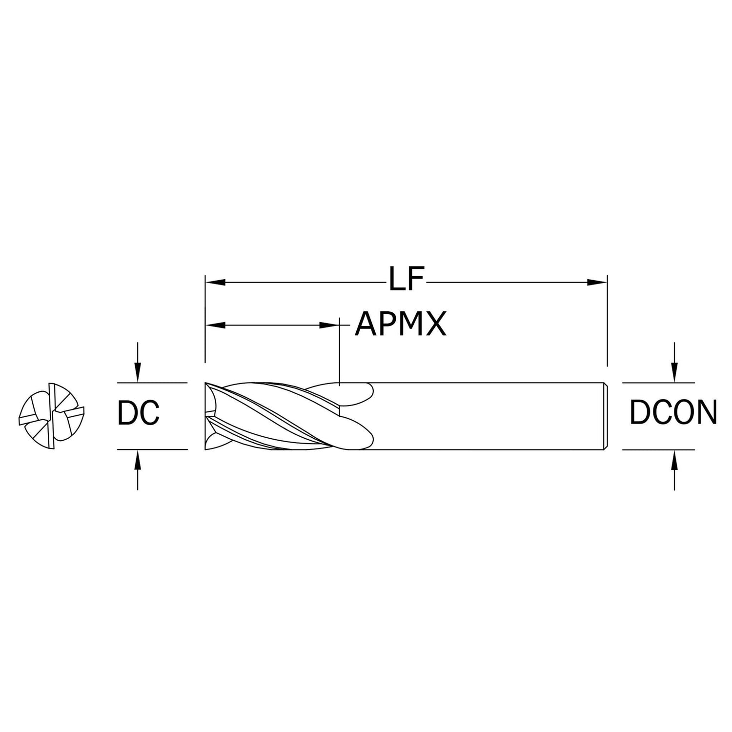 Cortador Vertical de Propósito General, Diam. 5 mm, 4 Flautas, Punta Plana