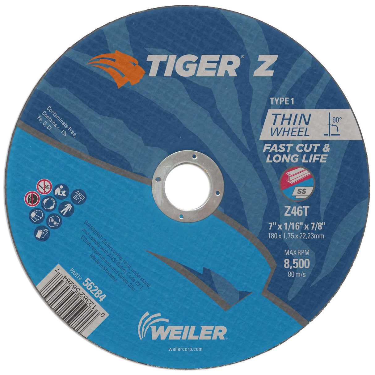 El disco de corte Weiler Tiger Z High Performance, conserva un alto poder de corte durante la vida útil del disco para que usted obtenga alta productividad en acero yacero inoxidable. Corte rápido y larga vida útil en el metal / Libres de contaminantes.