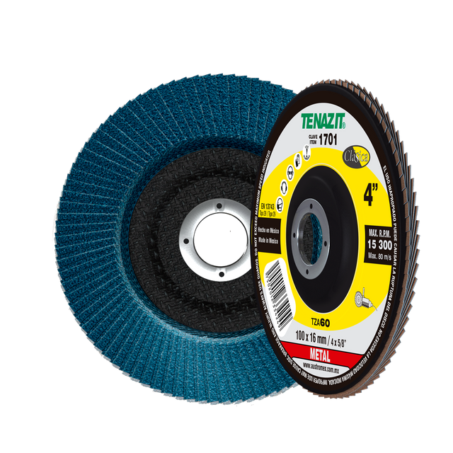 Disco Laminado de Zirconio, Diam. 4 pulg, barreno 5/8 pulg, grano 60, respaldo Fibra de Vidrio