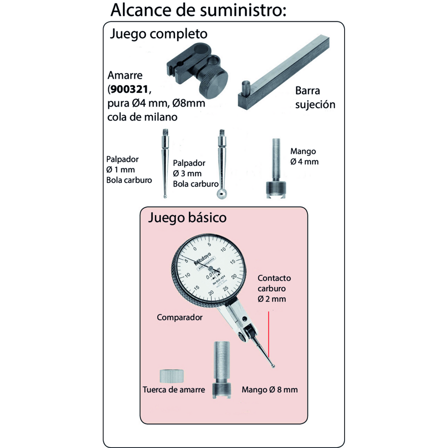 Indicador de carátula tipo palanca, Tipo Universal 0,03 pulg, 0,0005 pulg,Juego básico