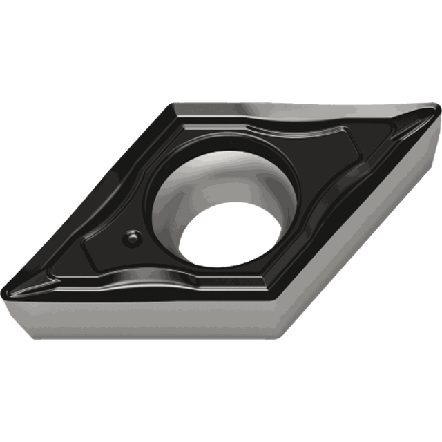 Insertos de torneado romboidales positivos de 55°, modelo DCMT ...-FM4, fabricados con tecnología Tiger·tec® Silver. Diseñados para un corte preciso y duradero, con excelente resistencia al desgaste. Código WMP20S, con radio de esquina r=0,2mm, ideales para aplicaciones de torneado de alta precisión y acabados finos.