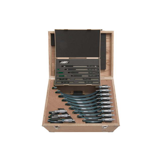 Este juego de micrómetros Mitutoyo no digitales, básicos y rentables, incorpora Trinquete para garantizar una medición repetible.
