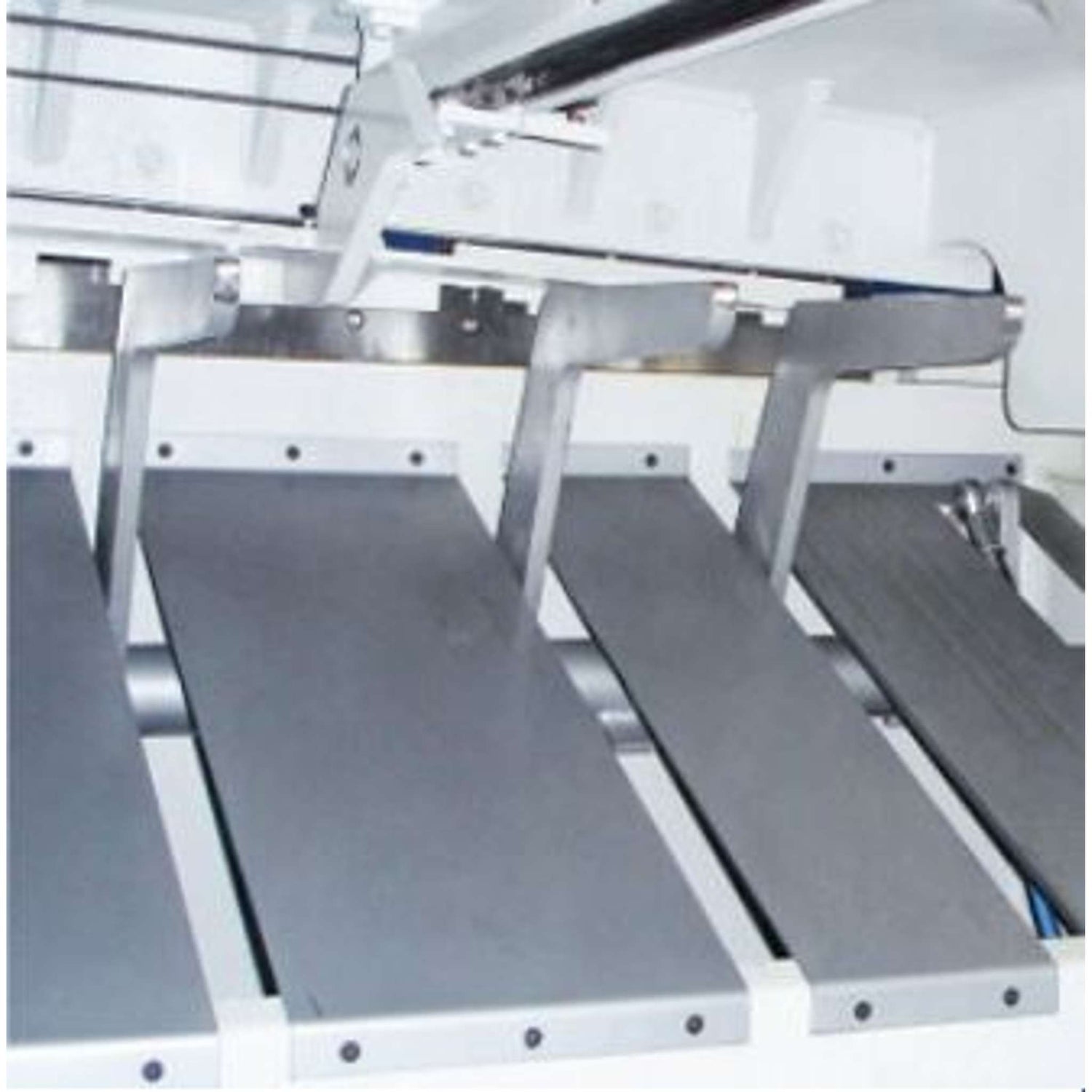 Componentes únicos que reducen la necesidad demantenimiento. Hecho para correr durante muchosaños en condiciones más duras para grandes recortes.Características de construcción únicas combinadas conuna gran artesanía. El cuerpo de la máquina y lasconstrucciones de acero de la viga superior se handiseñado de acuerdo con criterios de estiramientomínimo y resistencia óptima.