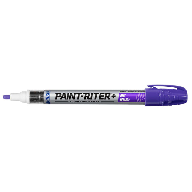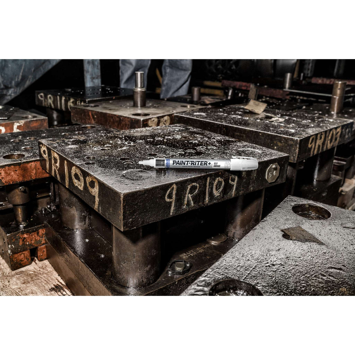 El marcador de pintura Paint-Riter® de Markal fue desarrollado para obtener un rendimiento de marcado superior en superficies aceitosas y grasientas. La pintura de alto rendimiento penetra a través de aceites y grasas para secarse rápidamente y dejar una marca audaz y permanente que es resistente al desgaste, a la intemperie y a la decoloración.