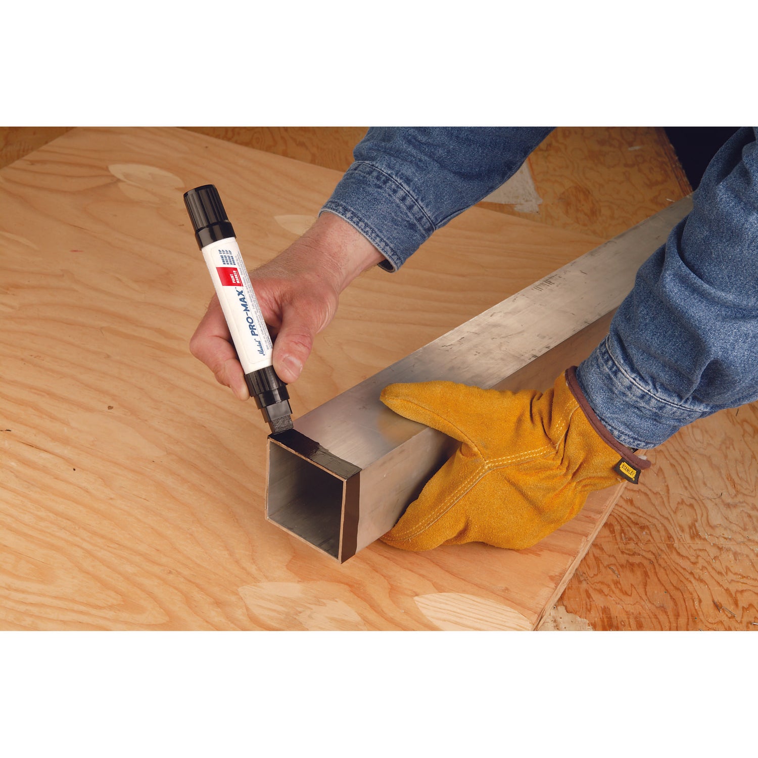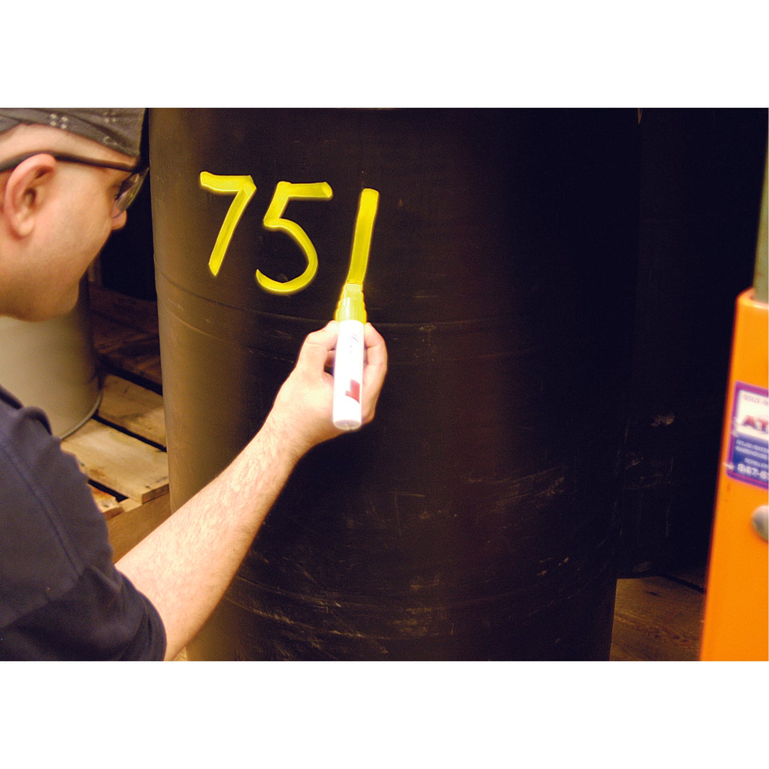 El marcador de pintura líquida Paint-Riter® de Markal tiene punta extragrande que proporciona las marcas más grandes y visibles. La pintura es resistente al desgaste, al agua y a la intemperie; se seca rápidamente para dejar marcas audaces y fáciles de leer, y es segura para casi cualquier superficie.