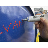 El marcador de pintura líquida Markal Stylmark® Original es un marcador con punta de bola metálica para marcar la mayoría de las superficies. El tubo exprimible de aluminio y la pintura espesa lo hacen adecuado para superficies rugosas, verticales y elevadas, con una excelente adherencia en superficies aceitosas y húmedas. La pintura sin xileno reduce los riesgos para la salud del usuario.