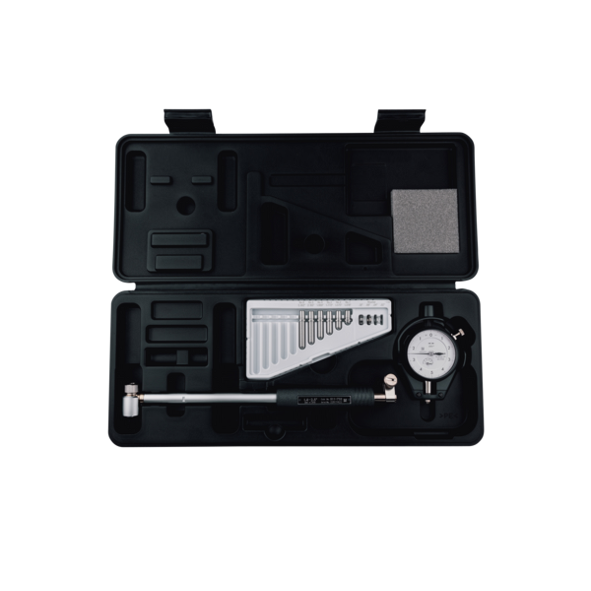 Juego de medidores de agujeros de aplicación de corto alcance que se autocentra automáticamente a través de un puente de centrado y ofrece los siguientes beneficios: Reduce la influencia del calor de la mano del operador en un 50% al hacer que el agarre tenga una estructura hueca, manteniendo así una medición de alta exactitud. roldana Intercambiable (0,5 mm de espesor) se suministran como accesorios estándar, puedes habilitar la configuración en pequeños pasos. Las puntas de contacto son de carburo (intervalo: 18 mm), lo que le brinda alta durabilidad y resistencia al desgaste.
