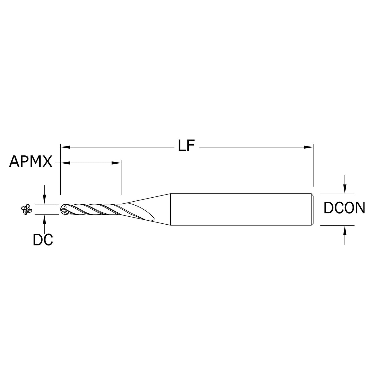 Micro Cortador Vertical, Diam. Cte. 0.0100 pulg, 4 Flautas, Punta Bola